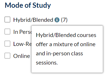 The Academic Program Search is a list of Academic Programs, created with WebDev’s Academic Programs CPT. These are filterable through an integration with the Search & Filter plugin, which indexes the Academic Programs and lets users filter them using a variety of filter fields.