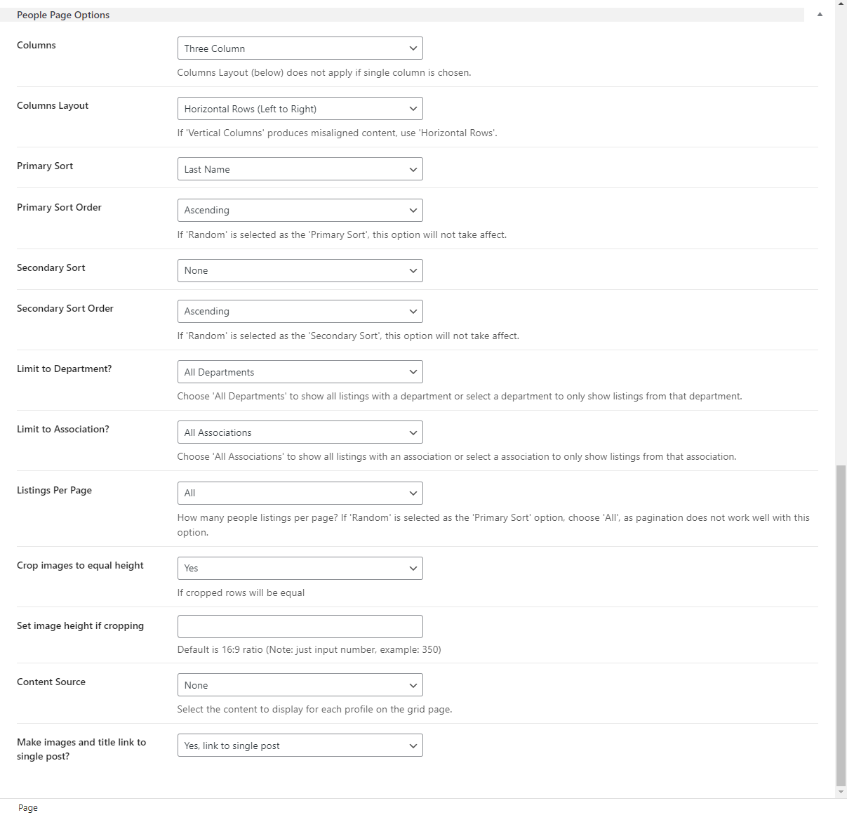 - Scroll down to the People Page Options section and configure the following settings: