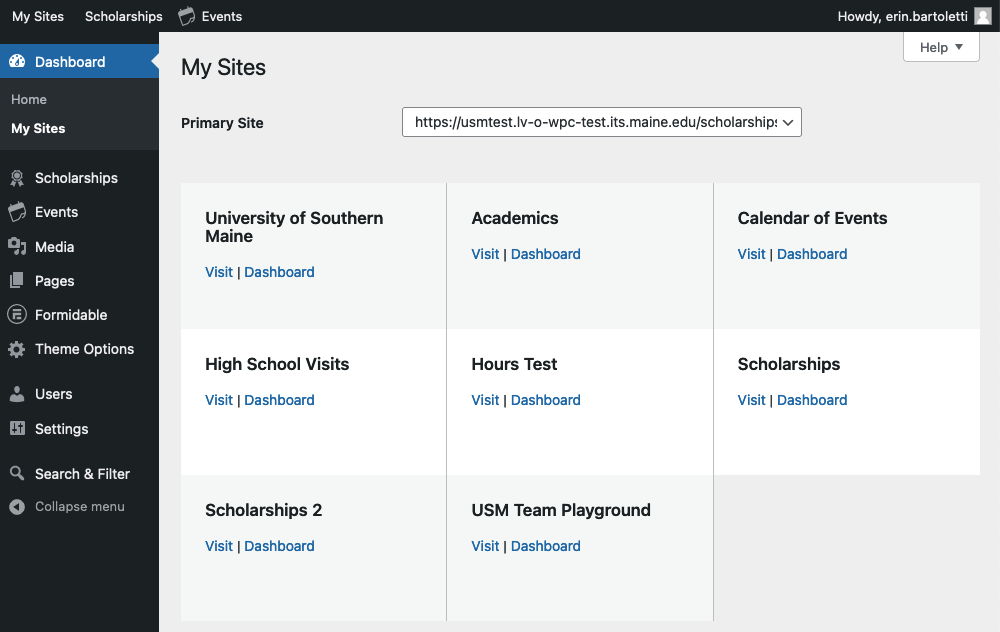 Our WordPress sites are set up to use the same maine.edu login as other IT services, such as Gmail and myCampus.