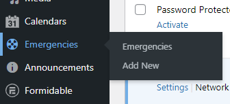 - Navigate to the Alert Host Subsite and click Emergencies > Add New:
